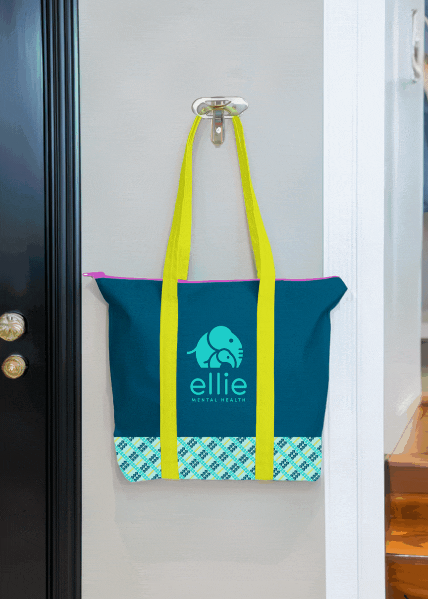 Kira Olson worked with the marketing team at Ellie Mental Health to produce the backpack for brand promotions.